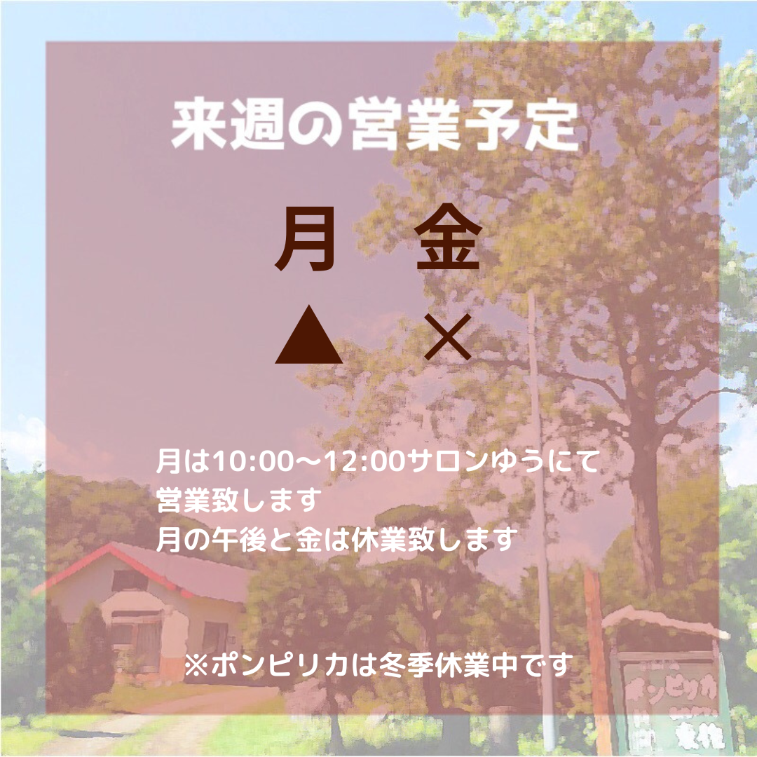 先週もお伝えしましたが、ポンピリカは冬季休業に入ります。