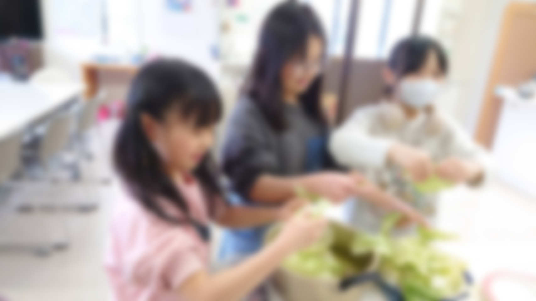 子どもたちにはサラダ作りなどを手伝ってもらいました